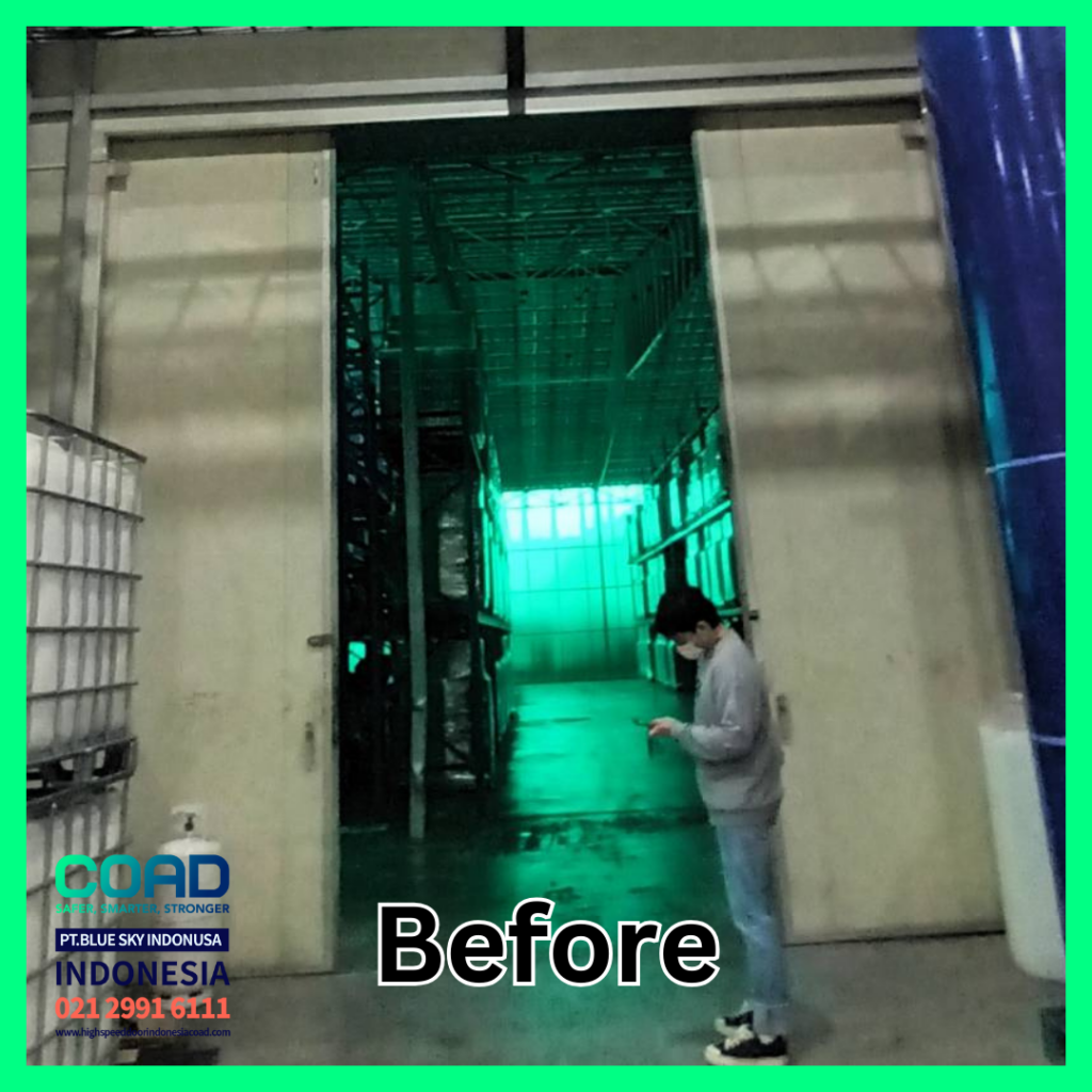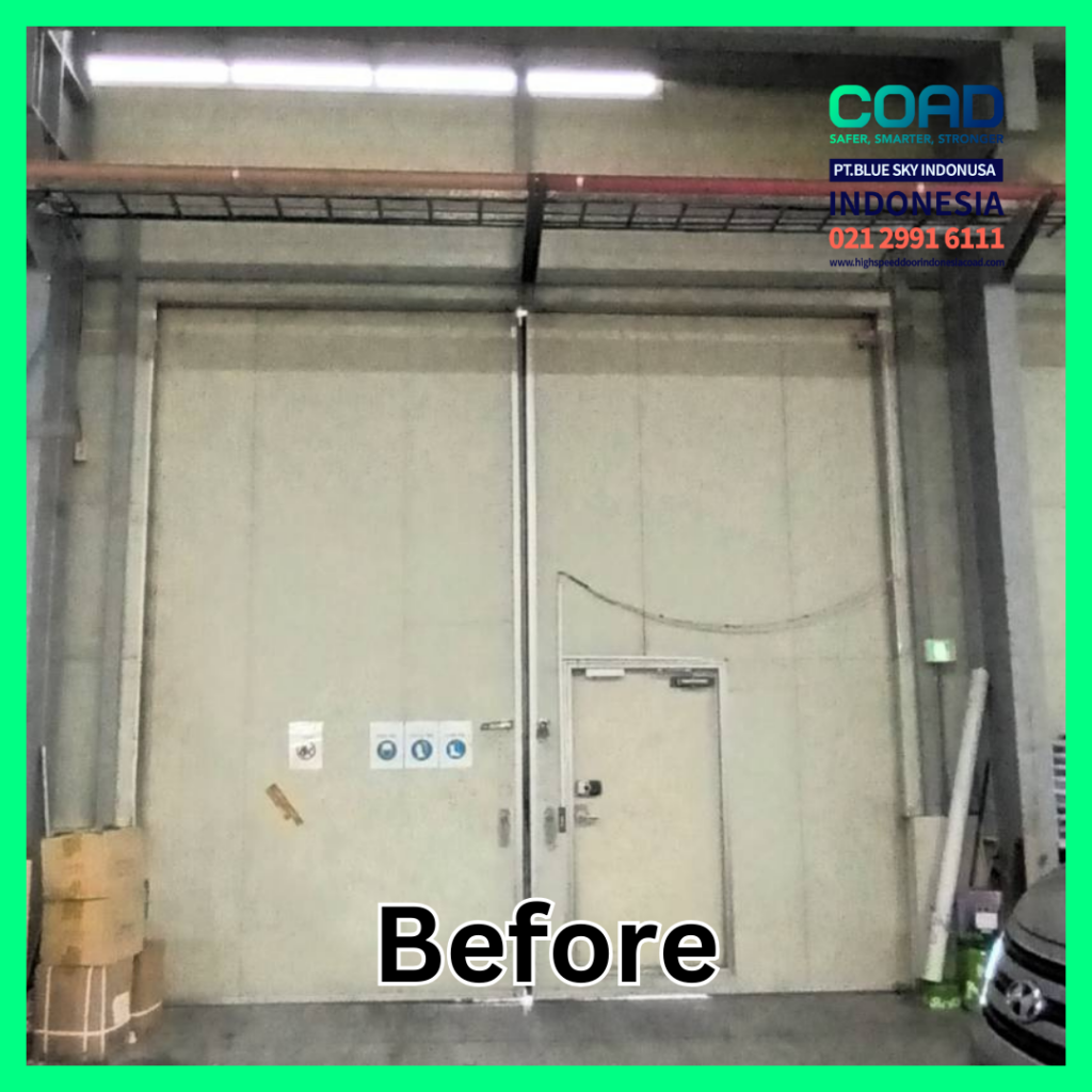 Selain itu, pintu ini dapat dioperasikan dengan kontrol jarak jauh atau sensor otomatis, yang memudahkan akses tanpa perlu meninggalkan forklift atau kendaraan. Dengan demikian, produktivitas meningkat karena operator forklift atau pekerja logistik tidak harus turun dari kendaraan untuk membuka pintu secara manual.