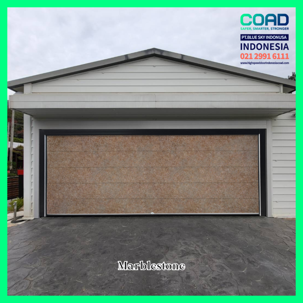 COAD Indonesia menawarkan berbagai pilihan desain menarik seperti Satin Pearl White, Satin Pearl Grey, Marble Stone, Wood, Dark Grey, dan Dark Brown, sehingga Anda bisa menyesuaikan tampilan pintu garasi dengan gaya rumah Anda.