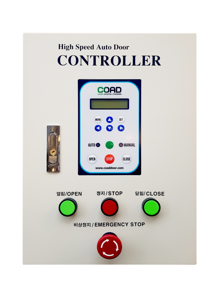 High speed door motor yang digunakan oleh COAD Indonesia pada setiap pintunya memiliki efisiensi tinggi. Peredam poros tegak lurus efisiensi tinggi: efisiensi 20% dibandingkan dengan roda gigi heliks, efisiensi reduksi 85%.